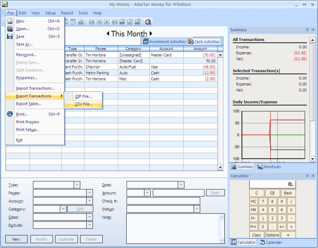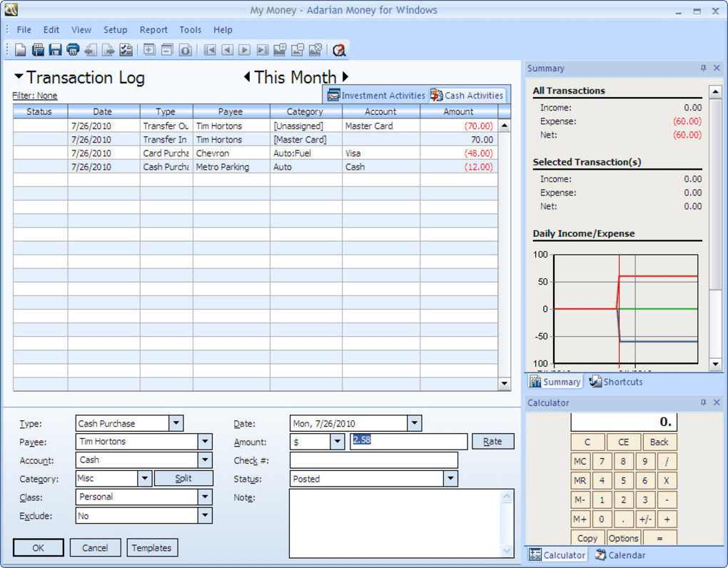 Adarian Money helps you create a monthly budget for your expenses – and stick to it. With the program’s reports (which you can export to QIF or CSV files) and transaction logs, you’ll know exactly where all your money went.