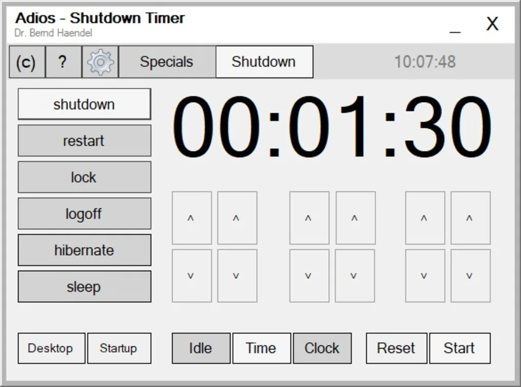 Adios – Shutdown Timer is available for Windows 10 and above. The current version of the software is 1.2.8.8, and you can run it in English and German.
