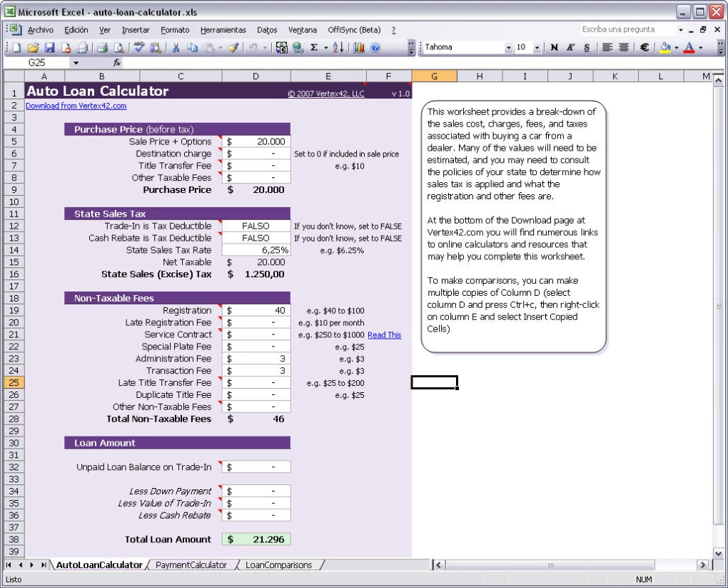 Auto Loan Calculator is not a program in itself, but just an XSL file you can open and edit in Excel. While this has certain advantages (it doesn’t require installation, nor does it modify anything on your system) it also has certain disadvantages, like needing some basic Excel knowledge and having to enter all the information by hand.