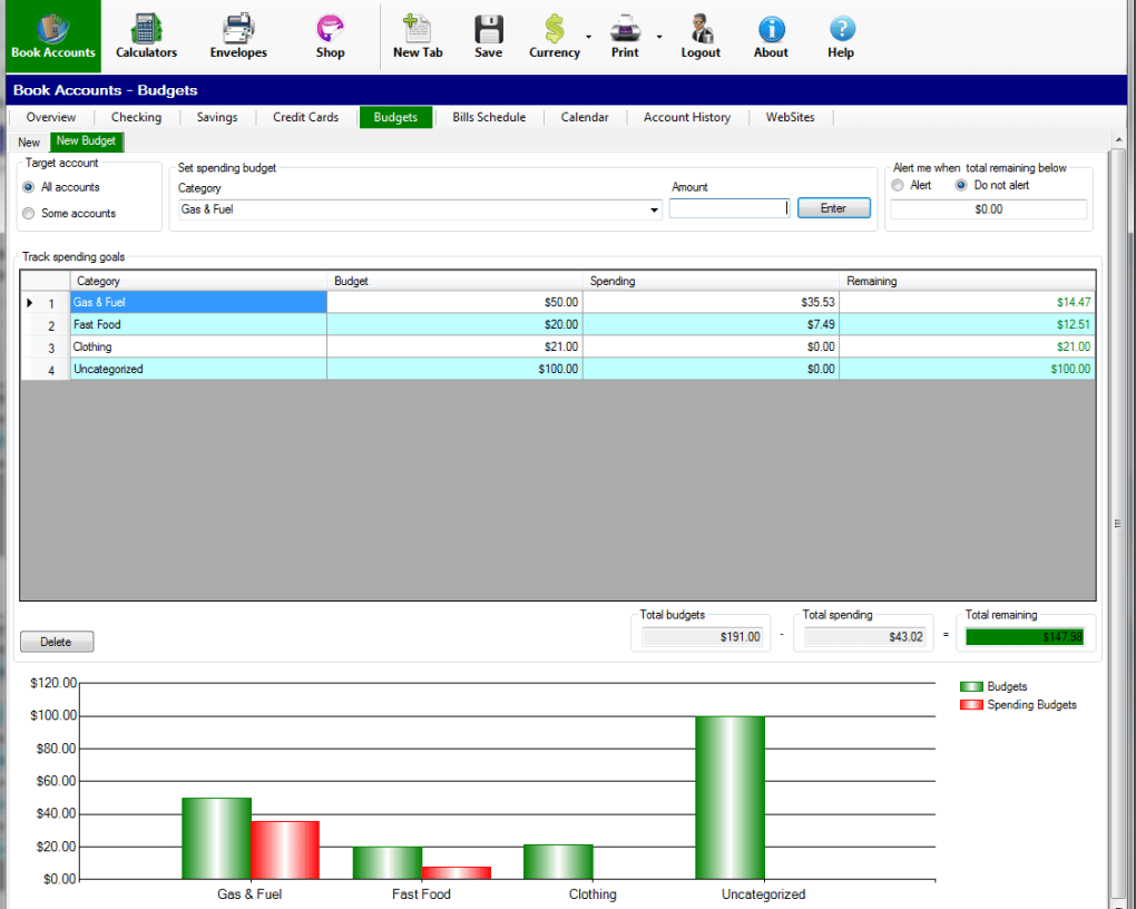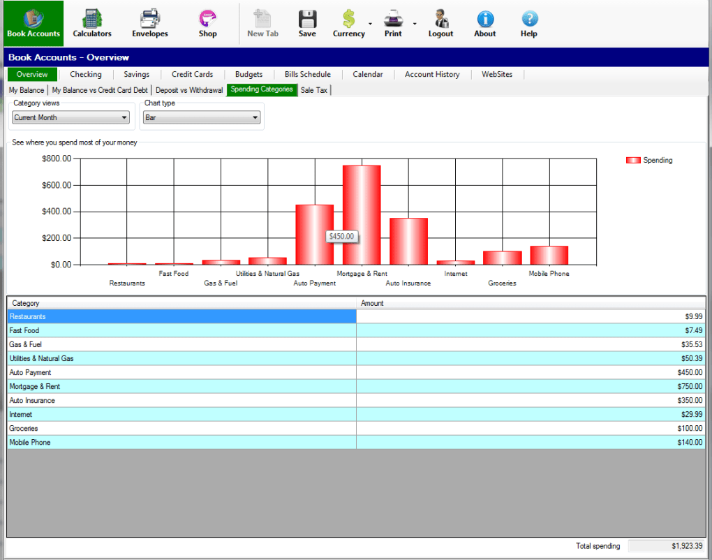Book Accounts is personal finance management software that keeps track of all your checking, savings and credit cards. It is easy to reconcile your accounts. You can easily track your financial information by manually entering your monthly transaction. You can categorize your spending so you know where you’re spending most of your money on. It is easy to see where your money is going by looking at the pie or bar charts. You are able to set up your budget for each category and stay on a budget.