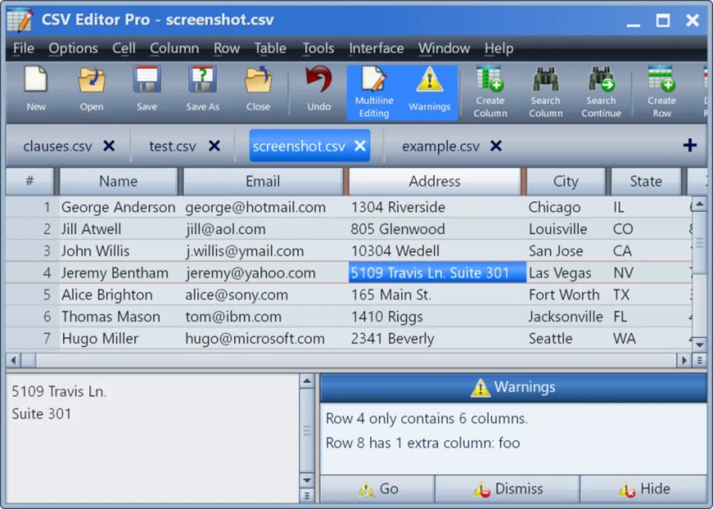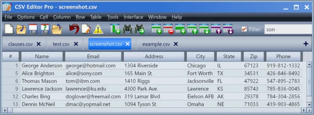 CSV Editor Pro is the professional choice for working with CSV files. Packed with an arsenal of features and tools, it can save you a tremendous amount of time and effort. Rows and columns can be created, deleted, rearranged, and searched at will. CSV Editor Pro supports sorting, filtering, multiline editing, search and replace, graphing, deduplicate, unicode, printing, and much more. Although the interface is simple and intuitive, a detailed help file is provided. Download the fully functional 30-day trial today!