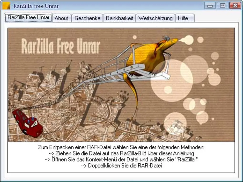About the download, RarZilla Free Unrar Portable is a not that heavy program that doesn’t need as much storage space than many software in the category Software utilities.Since the software joined our selection of software and apps in 2012, it has obtained 14,674 downloads, and last week it had 0 downloads.It’s available for users with the operating system Windows 95 and prior versions, and you can download it in English, Spanish, and German. Its current version is 3.33 and its last update was on 6/16/2012.