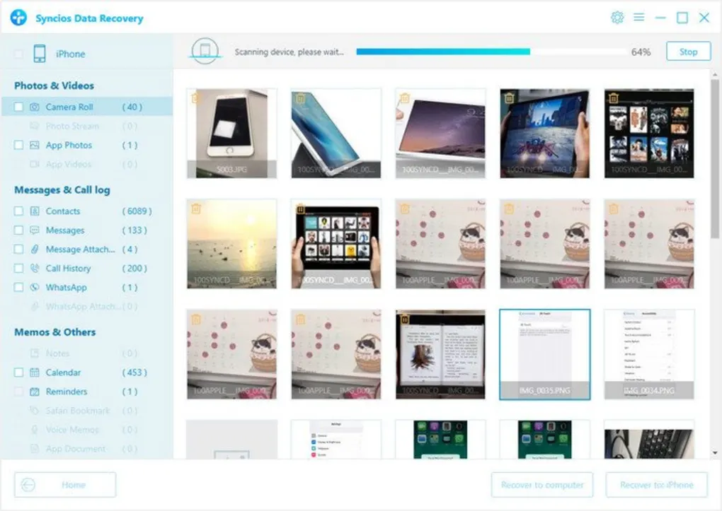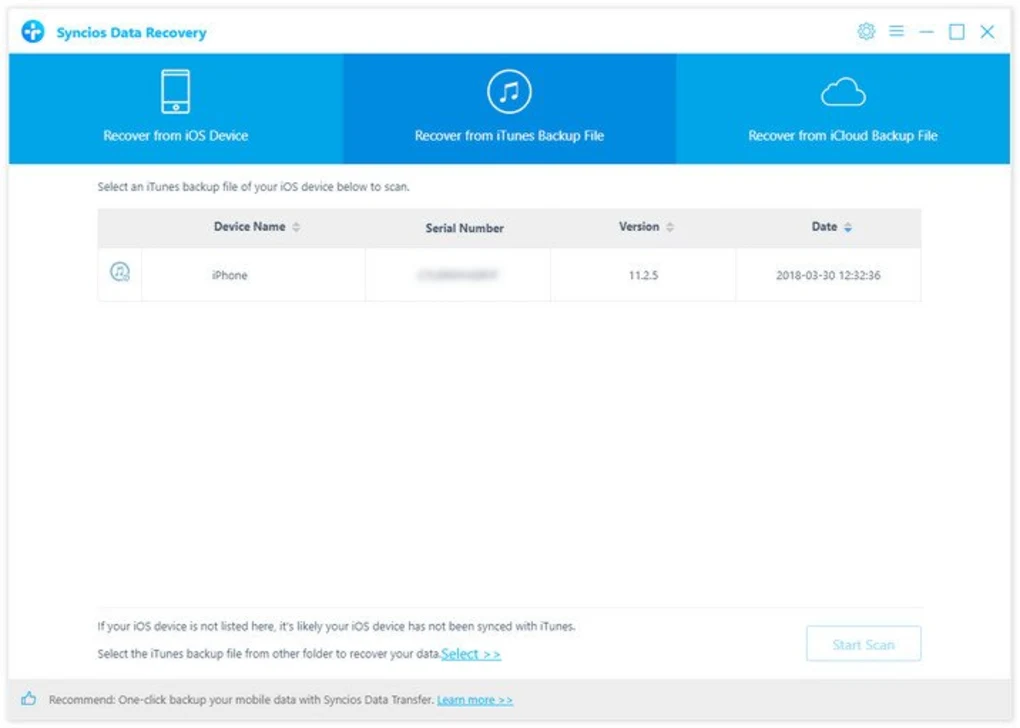 SynciOS Data Recovery provides 3 different methods to recover files from iOS device, iTunes, and Cloud Backup. To retrieve lost data, scan your iOS device, preview your deleted or current phone data and proceed to selectively recover to the device itself or to a PC. If you’re restoring from iTunes BackUp, you must view and extract its content first before you can go on exporting or restoring.